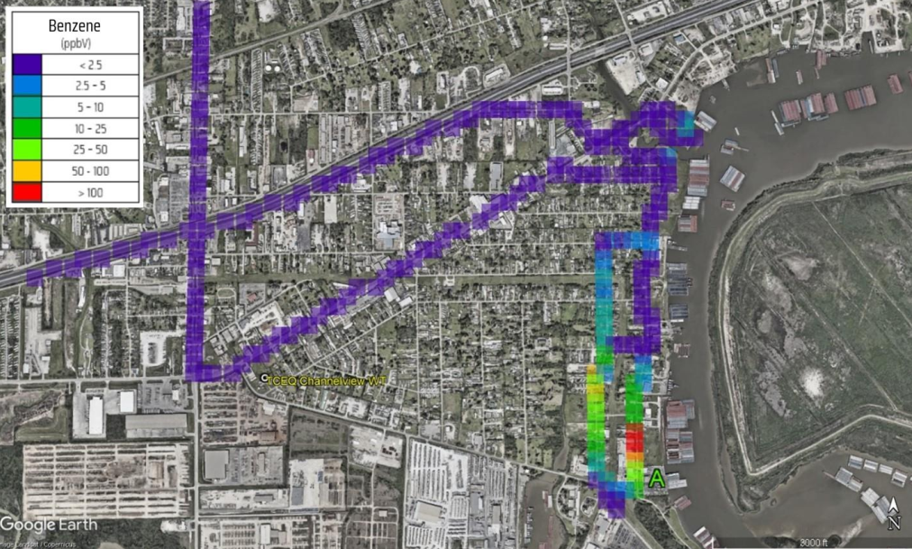 El 8 de noviembre de 2021, los científicos de campo de la TCEQ registraron dos promedios de benceno (de una hora cada uno) que superaron las pautas del estado. Pero ninguno apareció en el monitor fijo de la TCEQ, cuyas lecturas se utilizan para medir el riesgo de cáncer de los residentes. Cuando los científicos midieron un promedio de una hora de 203.5 partes de benceno por mil millones de partes de aire (ppmm), el monitor registró solo 1.2 ppmm. Cuando los científicos registraron un promedio por hora de 534.6 ppb, el promedio más alto del monitor fue sólo de 7.8 ppmm.