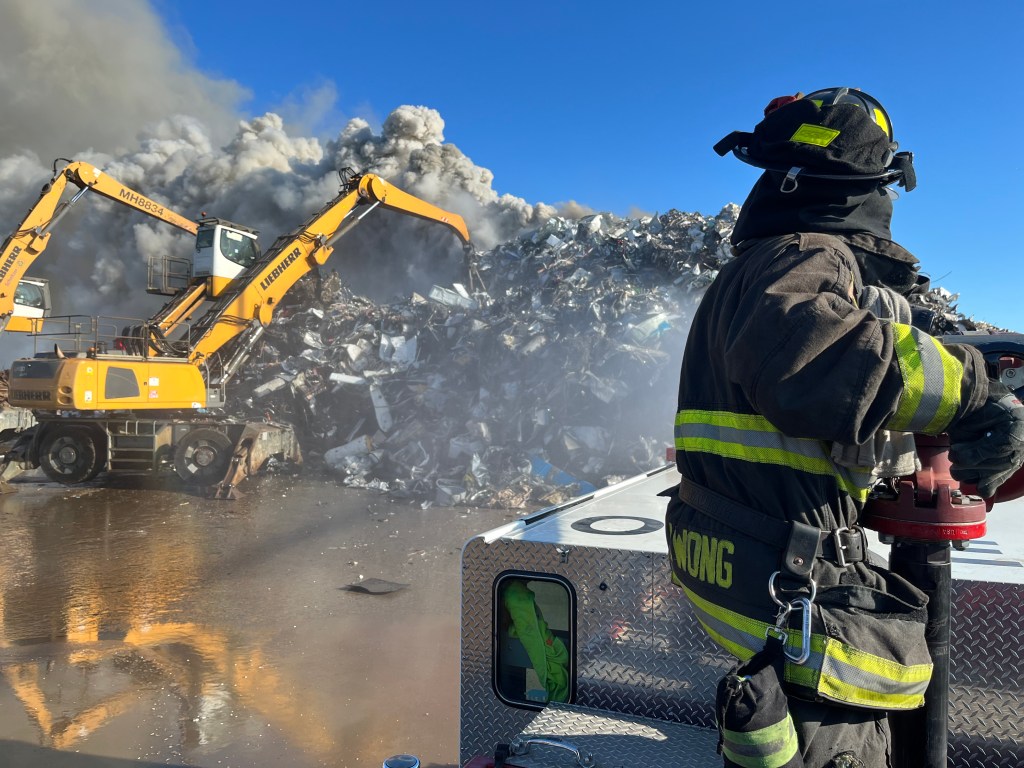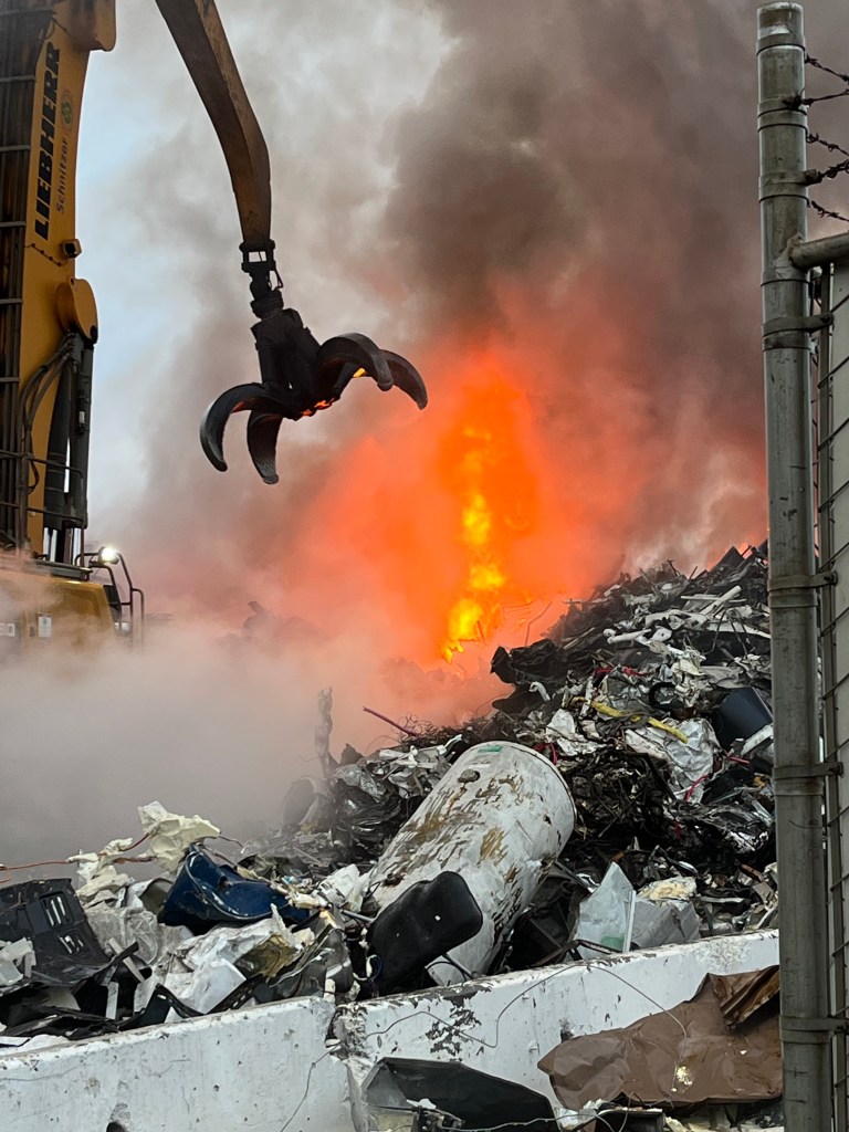 It wasn’t the typical smoldering nugget of debris. Instead, smoke was billowing from a massive pile of scrap as flames shot outward from an orange glow deep within.
